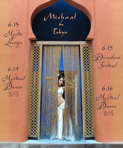 私の師匠Mishaalが、6月に来日! 待ちに待った詳細が発表されました☆ MISHAAL in TOKYO 2014.6.13-16 6月13日(金) Mystic Loungeミスティック ラウンジ 場所:Ruby Room 渋谷 http://rubyroomtokyo.com/ 時間:19:30 -22:30 当日券:2000円 ミシャールがお気に入りのエスノ音楽をDJする音楽とダンスを楽しむ一夜。 ゲストダンサーも踊ります。 6月14日(土) Mystical Dance ~ Private Circle ミスティカル ダンス (プライベート サークル) 場所:デバダシ スタジオ表参道 時間:17:00 - 19:45 参加費:10000...