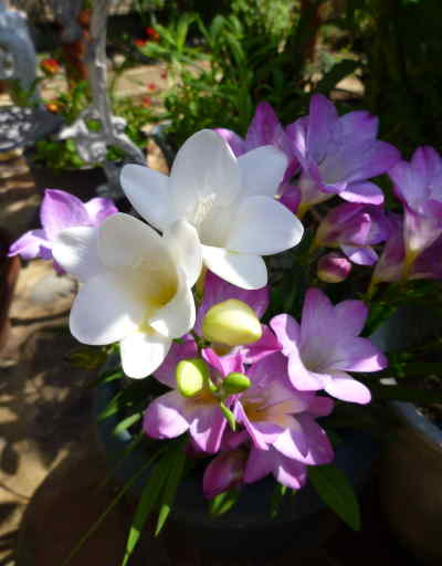 JUGEMテーマ:園芸 ミックスフリージャーの球根を買って、最近はこの2色が咲いています。 黄色がよく見る色ですよね。 ピンクは咲き進むと色がボケてきますね。 香りが好きで植えたのですが、色違いだからかあまり匂わなくて残念。 黄色が欲しかったのですが、白もなかなかきれいです。 地植えでも2、3年に一度掘り起こして植え替えたほうがいいようです。...