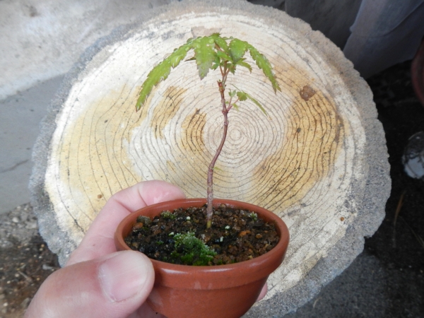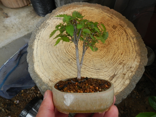 JUGEMテーマ:盆栽 おはようございます、モンカベです。 小さな力が集まれば・・・ 1+1=2 ではなく、 2以上になることも・・・ 今朝のケヤキです。 今朝は、強い風が吹いています。 盆栽が飛ばされていないかと心配でしたが、 一つも倒れていませんでした もう一つオマケに! 実生2年目ムラサキシキブも芽を出しました どちらも自作鉢。 それではまた今度