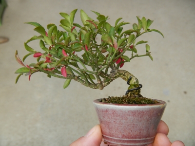 JUGEMテーマ:盆栽 おはようございます、モンカベです。 少しずつ紅葉していますが、風の強い日には、 すぐ赤くなった葉が飛んで行ってしまいます。 春に購入した時は、花が二つ付いていましたが、 やはり、風に飛ばされてしまいました 棚場の風通しが良すぎるのかな? 時間のある時に、何か対策をしたいと思います。 それではまた今度