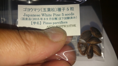JUGEMテーマ:盆栽 おはようございます、モンカベです。 見つけて買ってしまいました 大手通販サイト、アマ・・なんとか、で買ってしまいました 5粒しか入っていませんが、沈下試験をして、 沈んだものだけ入っているようです。 100%芽が出るとは思いませんが、 今から、ドキドキです 今年も、何種類か種を蒔いてみたいと思っています。 それではまた今度