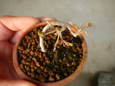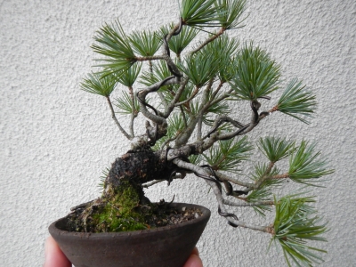 JUGEMテーマ:盆栽 おはようございます、モンカベです。 昨日仕事から帰ってきて、いつものように盆栽をみていました。 毎日、少しずつどの盆栽も変化していますが・・・ 赤松がボリュームアップ?・・・ 枝!? 写真では見にくくなってしまいますが、 枝っぽく出ているような??? 今年の4月に芽が出た赤松苗は、全部で14本。 よく見ると、枝っぽいのが出ている物が4本。 早いものは、もう枝が出るのでしょうか・・・? ん〜〜〜 怪しい・・・ それではまた今度