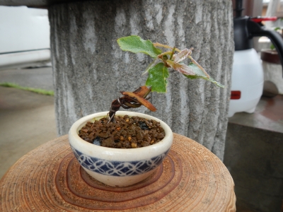 おはようございます、モンカベです。 見つけました コナラかミズナラかわかりませんが、 ドングリから出てきた芽です 5月初旬に見つけて、新芽を摘んで、今は枝が三本出てきました この鉢にはモミジが植えてありましたが、枯れてしまいました・・・ 丁度そんな時に、見つけたドングリ 生まれ変わりだと思って大事に育てていきたいと思います それではまた今度