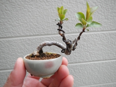 JUGEMテーマ:盆栽 2015/3/22 おはようございます、モンカベです。 春分の日を過ぎましたが、まだ春一番の発表がありません。 今までにも、”春一番の発表ナシ”という年もあったようです。 では今回のテーマ! 新芽が伸びてきた深山海道???です。 なぜ???(ハテナが三つ)というと、購入した時に盆栽園で名前の札が無く、 葉っぱも無かった為に「おそらく深山海道かな〜」という感じでしたが、 このサイズに魅かれて購入してしまいました! (店主はユニークな方だったので、また御邪魔したいと思っていま...