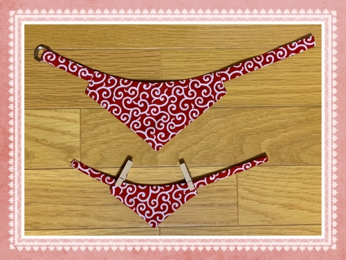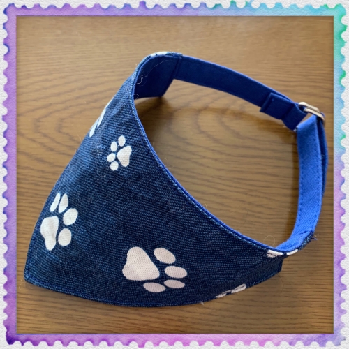 JUGEMテーマ:ハンドメイド 今までワンタッチバンダナを販売してきました。 マジックテープがついているので、多少のサイズ調整は可能ですが、 最大サイズにして首に巻くと、マジックテープがはみ出ているため、 ワンちゃんによっては毛がマジックテープに絡みついてしまうことも。 これ、モモちゃんの毛は絡みつかないんだけど、 ココちゃんの毛は絡みつくんです。 毛質によるみたいですね…。 ということで、規格変更を検討しています。 ひとつ試作を作ってみま...