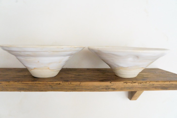 milk choco sara のセットになります。 2点のセットです。 一つ一つ表情が異なります。 一つの皿の方は、ぽこり、ぽこり、ぽこりと三つへこみをつけてあります。 もう一つの皿の方はフラットに仕上げてあります。 お使いいただく日のご気分でお選びいただき異なる表情を お楽しみいただけたら嬉しいです。^^ お惣菜を盛って鉢としてもお使いいただけますし、皿として チャーハン、スープなど幅広い用途にもお使いいただけます* また陶石がツブツブと出ております。 ...