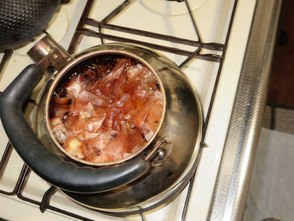 JUGEMテーマ:ハンドメイド TVを見て作ってみたくなり作りました。 (^.^) 捨てるヤカンで玉ねぎの皮を煮て 晒しを手ぬぐいの長さに切ってボタン を紐でくくったりネジッタリしてヤカンに みょうばんにつけ水洗いをして干しました しぼった所は斑になりましたね(#^.^#)