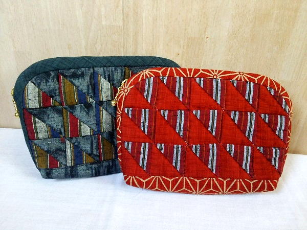 JUGEMテーマ:ハンドメイド ポーチづくりも続けています。 三角のパーツをつなげてポーチを作りました。 今回は和風の縞模様を使っての和風のポーチです。