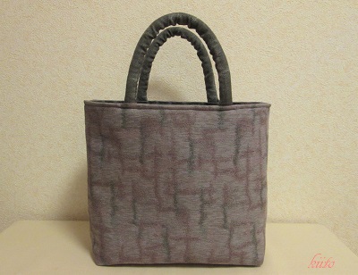 JUGEMテーマ:ハンドメイド ウールの着物をほどいた生地から バッグを作りました。 写真では わかりにくいのですが(ごめんなさい) 淡いピンクにグレーで柄が入っています。 持ち手と中は 生地を裏返して使ってみました。 前から反物の幅 そのままで作ってみたいな と思っていたのですが 思うだけで 行動に移さず...。 マチを取ったらバランスが悪くなるんじゃないか?とか 小さすぎるんじゃないか?とか あ...