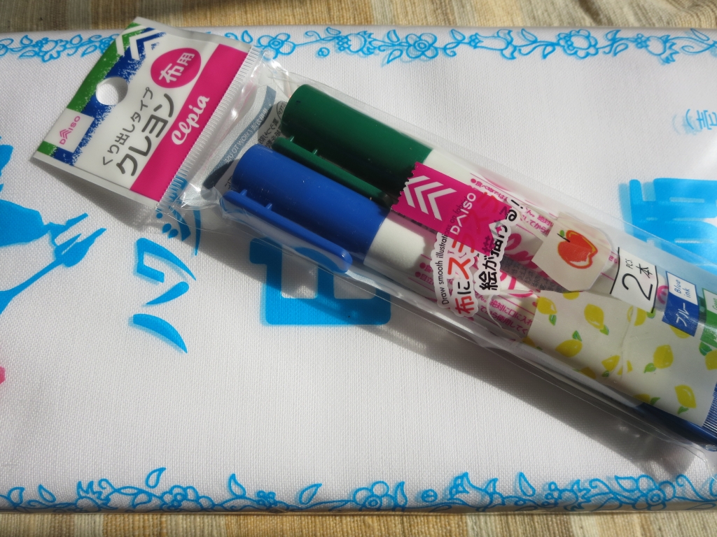 JUGEMテーマ:ハンドメイド さらし¥1200とダイソーで布にかけるクレヨン¥110 和風柄の桔梗をかき出来上がりo(^-^)o