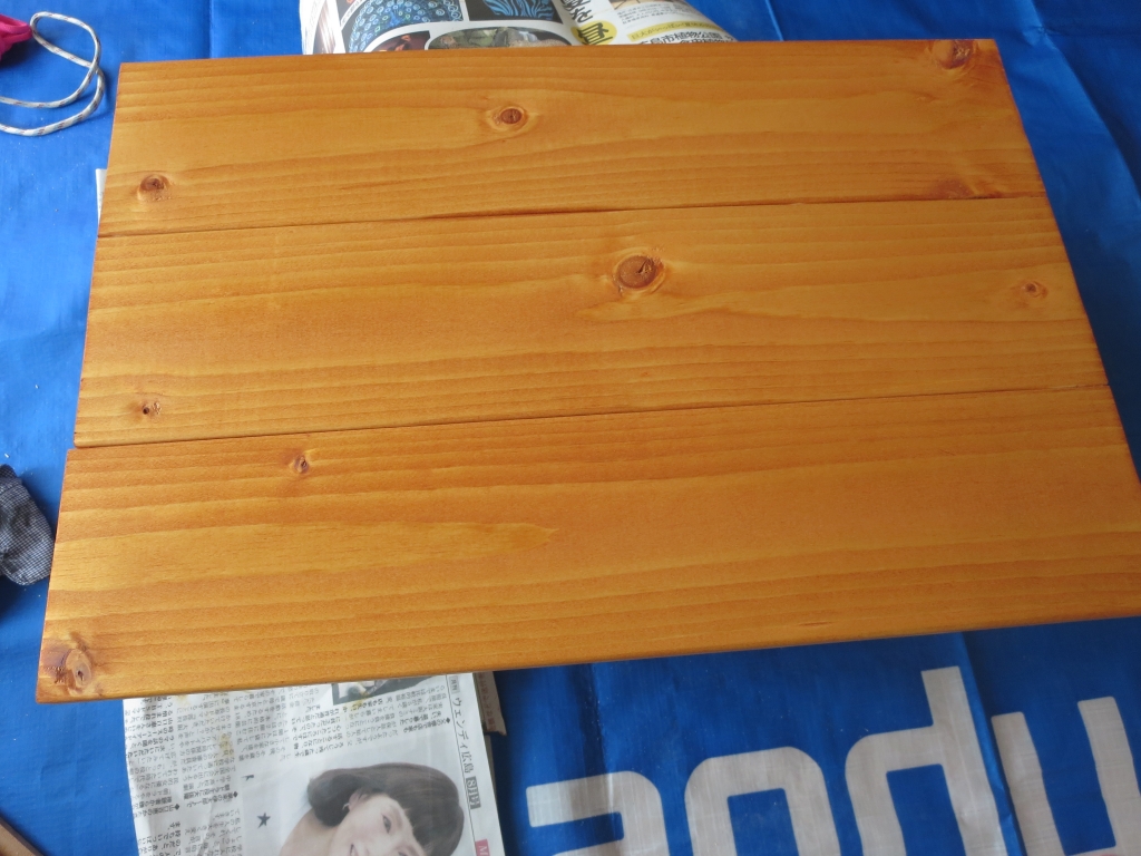 JUGEMテーマ:ハンドメイド 消費税があがるので木材を買って棚を作ることにしました。 1×4×6F¥267 3本40?に切って貼り合わせオイルステインを塗った所 ネジを立て板につけたのですがこの後塗ればよかった ネジを隠して塗って出来上がり スタンドデスクとして使っています。(#^.^#)