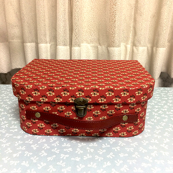 JUGEMテーマ:ハンドメイド 妻のカルトナージュの作品、新作です。 いやいや、とうとう箱形ケースも金具で開け閉めするタイプになりました。 どうやらこれに作った人形を入れて販売するつもりのようです。