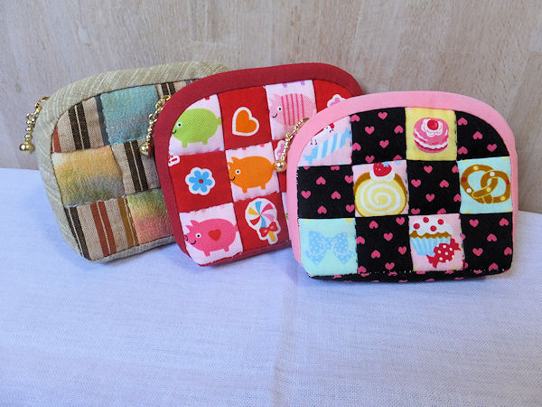 JUGEMテーマ:ハンドメイド 今日は朝から明るくていい天気です! 窓を開けていると風も入ってくるので心地いい感じの暑さです。 今日はパッチワークの小銭入れを作ってみました。 渋めの和布縞模様やかわいいブタちゃん模様、スイーツ模様のパッチワークの小銭入れです。 ポイントカードが入る大きさでもあるので、カード入れにもなります。