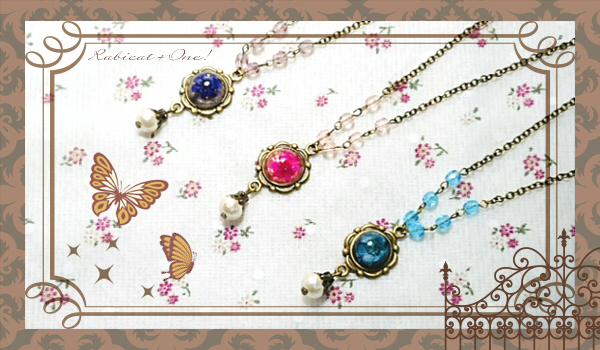 JUGEMテーマ:ハンドメイド こんばんは。今日も母です。 娘は最近ドット絵の方にハマっているみたいなので、アイディアだけをいただいています(笑) 今日ご紹介するのは私案の作品ですが、ご紹介致しますね。 今回はネックレスを作りました。 金古美のミール皿と金属パーツを使い、アンティーク風なネックレスに仕上げてみました! 色は紫色、ピンク、青色の3色のお花を使いました。 チェーンの長さを変えて2パターン作りましたので、そちらもご紹介しますね。 ...