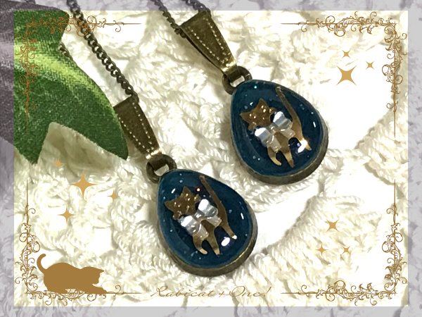 JUGEMテーマ:ハンドメイド こんばんは。今日は娘が更新させていただきます! ここ最近は色々とレジンの試行錯誤と練習をしているので 少し前に作っていた作品をご紹介したいと思います! 今日ご紹介させていただくものは、レジンのネックレスです。 雫型の小さなミール皿で何かを作りたくなり ミール皿に入るもの何かないかな?と材料をあさっていたら 猫のメタルパーツが目に入ったので「これだ!」と封入してみました(ミΦ ﻌ Φ...