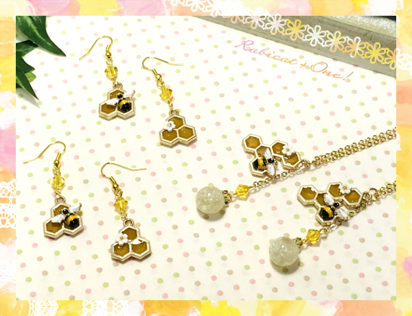 JUGEMテーマ:ハンドメイド こんばんは!またまた娘です。 今日は土砂降りの雨な上に、家犬がカットで江頭さん(の足)になって帰って来たりと色々ありましたが アクセサリーは可愛いものが出来たので、ご紹介したいと思います!(自画自賛…!) 今日ご紹介するのは、蜂のピアス(イヤリング)とネックレスです。 いつも作品を作るときは、どうしようかな?と悩む時間が長いのですが この作品は作る前からアイディアが浮かんだので、スムーズに作るこ...