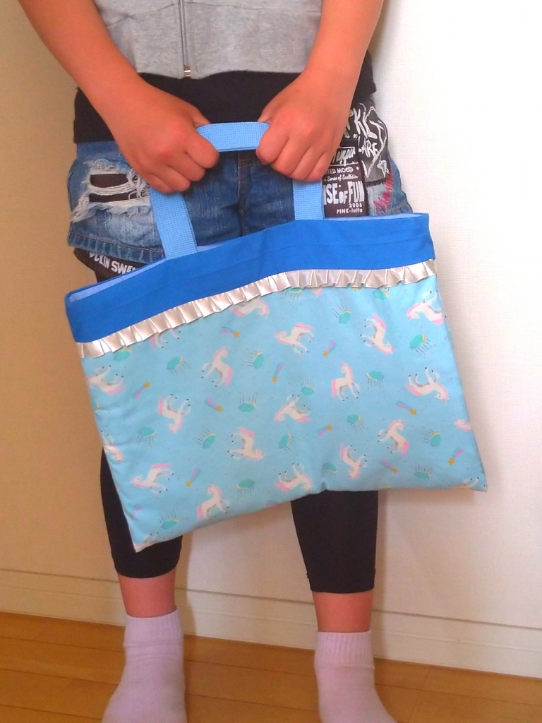 JUGEMテーマ:ハンドメイド こんにちは! 今日は、姪っ子が遊びに来てくれました(*゚▽゚*) ついこの前小学校に入学したと思ったら、あっという間に3年生です。 身長も10cmも高くなり、子供の成長はすごいなと、改めて思います。 今月、その姪っ子の誕生日ということもあり、プレゼントにレッスンバッグを作りました(*´∪`) 姪っ子の名前には青という漢字が入っていることもあり、好きな色は青色です♪ そのほかに好きな柄を事...