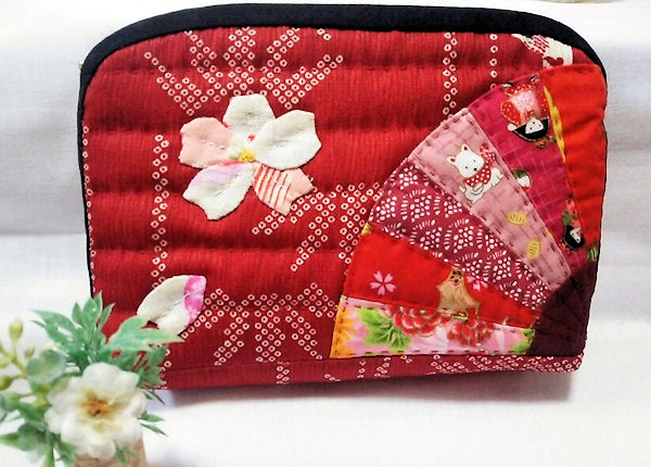 JUGEMテーマ:ハンドメイド こんにちは!(^^) 朝から雨降りです。 気温が上がらないので肌寒いですね〜 こたつ掛けのキルトもなかなか進まず、やっと5/2ぐらいすすんだかな〜という感じです。 長い道のりになりそうなので、ちょっと一息つくために、ポーチを作りました。 ☆花と扇のポーチ☆ 春らしいものを作りたかったんですが、色合い的に暑苦しい感じでしょうか(^^; 桜に華やかな扇を描きたかったんです...