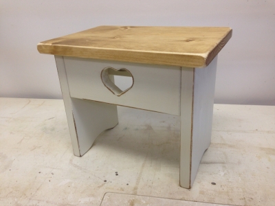 東京都K様よりオーダー頂いております踏み台完成致しました。 ハートのくり抜きがカワイイですね。 明日仕上げの蜜蝋ワックスしてから梱包して発送させていただきます。 size : w300×d200×h250mm color : ミディアムウォールナット&ミルキーホワイト JUGEMテーマ:ハンドメイド