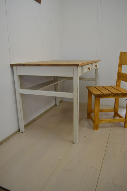 大阪府I様よりオーダー頂いておりました、ダイニングテーブル完成致しました。 側面に可愛らしい引出が一つ付いたタイプのダイニングテーブルです。 搬入できないと困るので脚は組立式に致しました。 大変お待たせして申し訳ございませんでしたが、本日梱包して発送させて頂きました。 脚は取り外してございます。A〜Dまでの印が押してございますので、同じ記号の場所に同梱包させて頂きました蝶ネジで取り付けて下さいますようお願い申し上げます。 気に入って頂けるといいなぁ〜 size : w1120×d750×h720mm ...