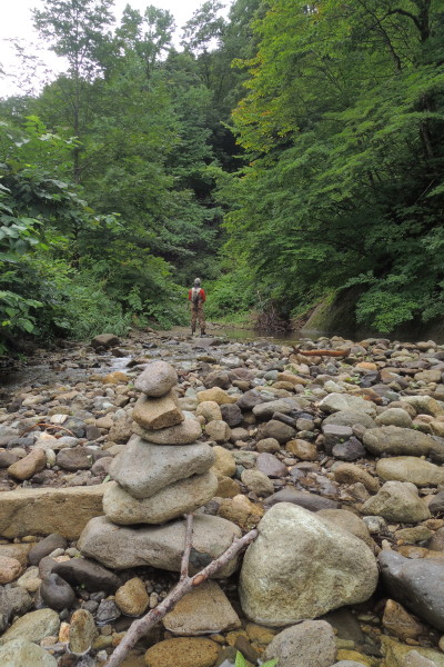 JUGEMテーマ:フライフィッシング たぶんダメだろうなぁ、って事で今シーズンは行ってなかったけど、もしかしたら...?一回ぐらいは確かめに行った方が...なんて欲を出して行ってみたけど、やっぱりダメなものはダメですね。人の世界なら、裏をかいて、裏の裏をかいて、なんてドロドロしたことがあるけど、自然はシンプル。ダメになったらダメ。はっきりしてますね。入り口にはケルンが積んでありました。友人が見つけて、これはまずいかも…