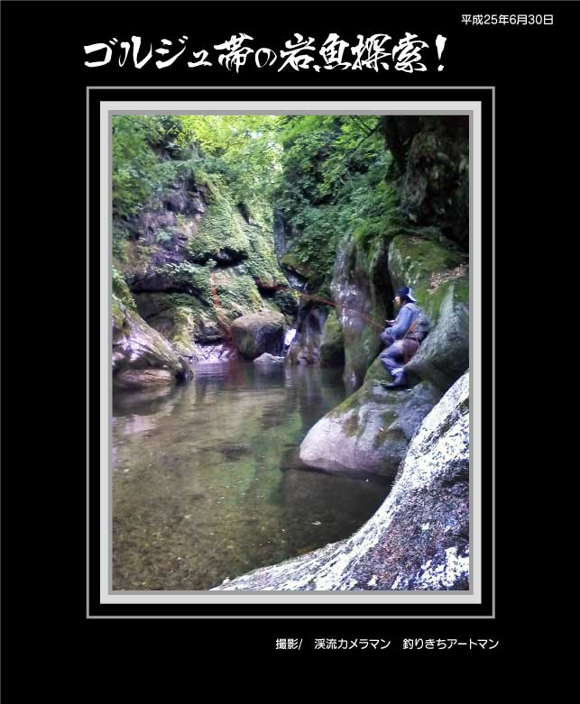 JUGEMテーマ:フィッシング JUGEMテーマ:フライフィッシング目立つ看板の達人6月30日 福島県の看板屋、釣りきちアートマンが書く釣り日誌本日の漁場=山形県 天気=晴れ 風=無風 気温=ちょうど良い今日は五目釣りのコーちゃんと2人で山形県のとある川の探索にやって参りました。昨年目を付けていたゴルジュ帯に入渓。雪代が止まった今がチャンスとみて・・・