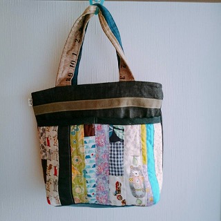 JUGEMテーマ:手作り この間のバックできた〜〜〜 なかなかかわいくできました。 端布のところ、キルト芯をしたに敷いてステッチいれてるので ふっかふかしてます そしてまた端きれ縫っていたのがあったので 裁断して〜〜〜 縫い縫い〜〜〜 今回は端布のところにファスナーをつけて あおりバック...