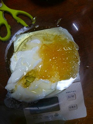 JUGEMテーマ:手作り ふふさんから頂いたでっかいオレンジじゅーす これをアイスクリーマーにいれて 無農薬レモン&宇和島産ルビーグレフルフレッシュローズマリーのマーマレード これを甘味にちょっといれてみましょ 20分するとシャーベットのできあがり〜〜〜 うま〜〜〜〜〜 お皿にとるとすぐ溶けちゃうけど &nbs...