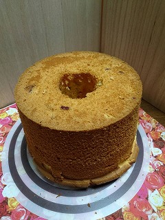 JUGEMテーマ:手作り 昨日の続きです 板チョコのホワイトチョコ二枚とクランベリーのしふぉん。 生地量が多くって長いしふぉんになったよ〜〜 カット あら、素敵(#^.^#) これね、味もおいしかった〜〜〜〜 前日のほんわか糖のキャラメルしふぉんと ほわいとちょこのと旦那にもっていってもらった。 「...