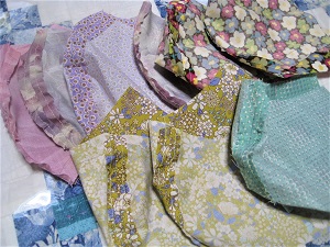 今日の天気は、晴れ・・・ 昨夜から準備していた、 白のマスクが出来ました〜 白マスクを作る時は ミシン糸が白なのでまとめて白だけ作りましたが 柄布は、糸を変えながら作っていくので 赤なら赤、グリーンならグリーンと 色ごとに縫っていきます。 女性用の白マスクは 白でも色んな柄布で作れるのでいいですね。 今日もパッチワークはそのままに・・・ それでは、また〜〜〜 JUGEMテーマ:手作り