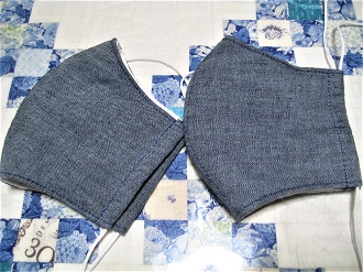 今日の天気は、晴れ・曇り・小雨・・・ 何だか寒い一日でした。 今日も午後からマスク作りで デニム生地で作ったマスクが出来ました〜 この布で作って・・・と主人が買ってきたデニム生地 作るとなかなかいい感じ・・・ ですが、ちょっと生地自体が少し厚手な感じなので 付けるとどうかな・・・ 主人、気に入ったようで良かったです。 まだまだマスク作り・・・ それでは、また〜〜〜 JUGEMテーマ:手作り