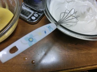JUGEMテーマ:手作り 猫野さんが、パンの実験をしていたので わたくしはしふぉんの実験をしてみました。 横クビレっていうか、立ち上がり部分が底あげみたいになるやつ 横あげ??? あれの検証です。 水分量が犯人なのでしょうか〜〜〜 一個だけ市販の白い卵 4個は先週の卵の残りのやつです。 いよかんピールもいれてみよう 国産ネーブルオレンジの果汁としぼったときに しぼり器にあった具、あとヨーグルトと米油が卵黄生地です ぷつぷつしてるのが、ネーブルオレンジ...