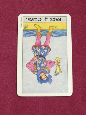 カップのページ。逆位置。 この人、カップのナイト程夢見がちでない それでいて、しっかりしてそうで。好ましいです。 が逆位置。w 愛の始まりが静かにやって来ています。 アレ、あれがそうだったのかな。位の、 目の覚める様な出会いでなくても、これから育んでいくような 柔らかな出会いや出来事。 いい感じの出会いを少し否定している?なんてあるのかも知れません。 日常において、情緒不安定になっていたり、 混沌とした現実を感じるようでしたら、 グラウンディングしてみるとよいかも。地に足をつける...