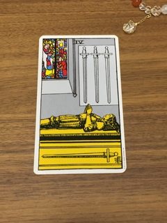 ソードの4。 『今日の一枚』のときは、だいたい3枚引きをして メインのカードのリーディングをしているんですが、 久しぶりだしどうかなー と思いつつ しかしながら、タロット自体はブレないことを確信しました。 自分がタロットに関して未熟であったり、 足りていないように感じたりしても、 必ず『今』をみせてくれるので。それがタロットの凄み。 で、今日は 一人で穏やかなに過ごす 日のようです。 瞑想、自分のプロジェクト、自分がやって人にみせる道、自分だけが知りうる進歩、喧騒にとらわれない。現実と...