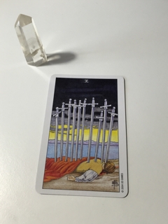 ソードの10。 激しいの、きました。本日の深夜から射手座の季節となりましたが、 射手座に土星がいること=射手座の人への試練 をこのカードみて思い出しました。 ※くわしくは NEWウメオニを! 抜けましたね。って受け止めればよいことかなと思います。 抜けてない!めちゃくちゃ刺さっているじゃん?!ともいえますけど、 対岸の陽はでてきました。 ソードの9は、暗闇のなかでベッドで人知れず泣いていましたが、 もうそんな悲しみは終わったという暗示。 連休で忙しかった人へのおつかれさまでしたかな。と...
