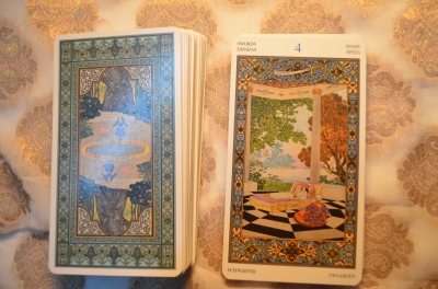 デッキ:”Tarot of The Thousand and One Nights" by Lo Scarabeo, ISBN :9780738707648 今日のカードソードの4です。これは休みのカードです。 もし、勉強して私は疲れました。。。だから、きょう私の休みしたら、いいだった。 ソードの4、大抵ベッドとか眠りとか瞑想等という意味です。 ************************ Today's card is the 4 of Swords. It is a holiday card. Maybe, I got tired while studying...It would ...