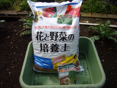 JUGEMテーマ:畑・ガーデニング 今日は葉にんにくの植え付けです! ですが、寒い! 畑いじりには寒すぎる! なので、畑いじりの前に1時間程ジョギングして 身体をあたため作業開始! プランターと培養土を用意。 にんにく球根の薄皮をはいで並べてみたら22個ありました。 1つアップで すでに芽が出ています。 プランターに培養土を敷きつめ 説明書きに「植え付け間隔はプランター・鉢植えで5?位」とあったので 几帳面に5?間隔に配置。 22個すべて配置しました。 説明書きの通り、...