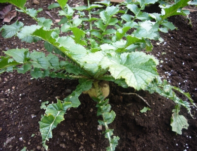 JUGEMテーマ:畑・ガーデニング 今日、仕事から帰ってきて台所のぞいたら、 かみさんが昨日収穫した大根を酢につけようと 準備をしていました。 まだ庭に大根あるけど、と言ったら煮てくれるとのこと。 で、懐中電灯もって庭の畑へGo! 30?ちょいの根長、根茎8?程度。 まずまずですな(o^ー')b 煮る前に首の辺りを生で食べたら、あらっ、美味しい! みずみずしくて大根の味。 (すんません、食レポ下手で。) 去年この時期に収穫した大根は煮ても苦くて不評でした。 大根が苦くなるのは土が酸性に...
