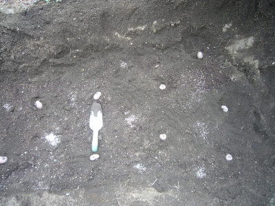 JUGEMテーマ:畑・ガーデニング インカのひとみの種イモを購入してから 土づくり→浴光催芽??→種イモカットでいよいよ植え付けです。 去年、ナスを3苗(人参とエンドウも)を育てた場所です。 同じナス科のジャガイモを植えるので連作障害回避のため、 狭い畑の中で土をあちゃこっちゃ入れ替え、 生ごみ処理機で乾燥させた生ごみ肥料、 ジャガイモの肥料、消石灰で土づくりしました。 植え付ける種イモは500g、15個です。 種イモの間隔をスコップの長さ分(30?程度)にして種イモを配置。...