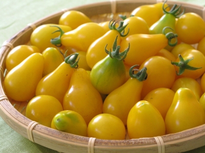 JUGEMテーマ:畑・ガーデニング リンク: http://www.marcheaozora.com/?pid=98193344 アメリカのスーパーマーケットに数年前から並び始めた品種です。 日本では非常にレアな品種です。 ミニトマトで、洋ナシの形をしているところから人気があります。 遺伝子組み換えはしていません。 収穫された黒トマトを食用として販売しても問題ありません。 栽培後に採種された種を再販しても問題ありません。 和名: イエローペアートマト 英名: Yellow Pear Tomato 学名: Solanum lycopersicum 原産地: カリ...