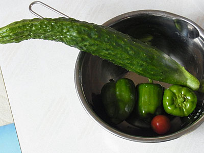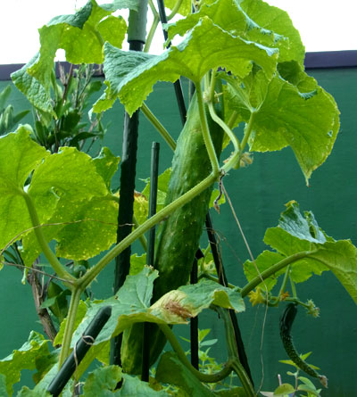 今日の収穫は、こんな感じ〜 やっぱりキュウリは形が悪いです(笑)が、 味は充分美味しいです。 このキュウリ、だいぶ強いらしく、雨が続いても、うどんこ病にかかる気配もありません。 やはり病気のかかりやすさも品種によるのかもしれないですね〜。 トマトもぼちぼち赤くなってきたので1個収穫してみました。 充分甘くなってました! これから続々と収穫できそう!楽しみです♪