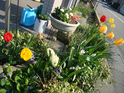 JUGEMテーマ:畑・ガーデニング ポカポカといい天気。 昨日は会社の飲み会で夜の10時半まで焼肉とビールをたらふく頂き、 そのまま酔っぱらって寝てしまった。 以外に今日はスッキリ!! さて我が家の家の前には小さな花壇があるのですが、 今はチューリップの見ごろです いろんなお花が咲き誇ってます!! 嫌がる もう太と一緒にパチリ!! やる気がない顔だね〜!! トマトも袋のまま植えられるという土を買ってきて植えてみた!! どうなるやら こうご期待!!