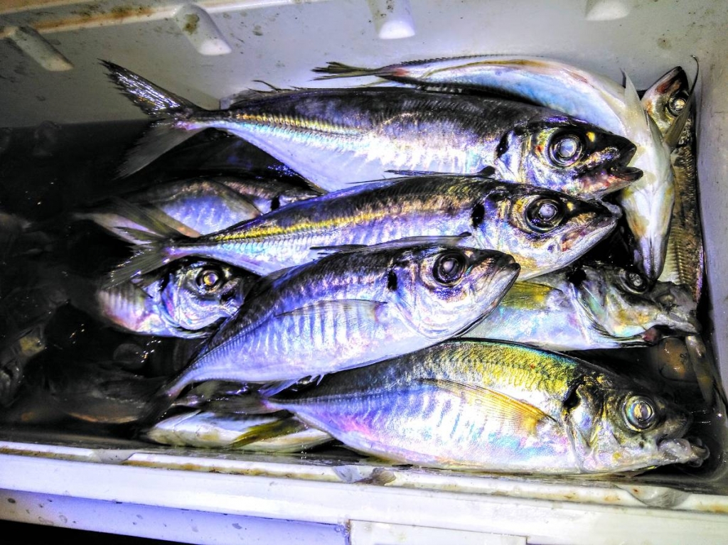漁師居酒屋(?)今夜も開店〜 神奈川県沖にて鰺・鰺・鰺釣って来ました 釣りたて鰺の刺身〜絶品ですよぉ〜〜〜 【 鰺の刺身 ¥600 】 JUGEMテーマ:磯釣り