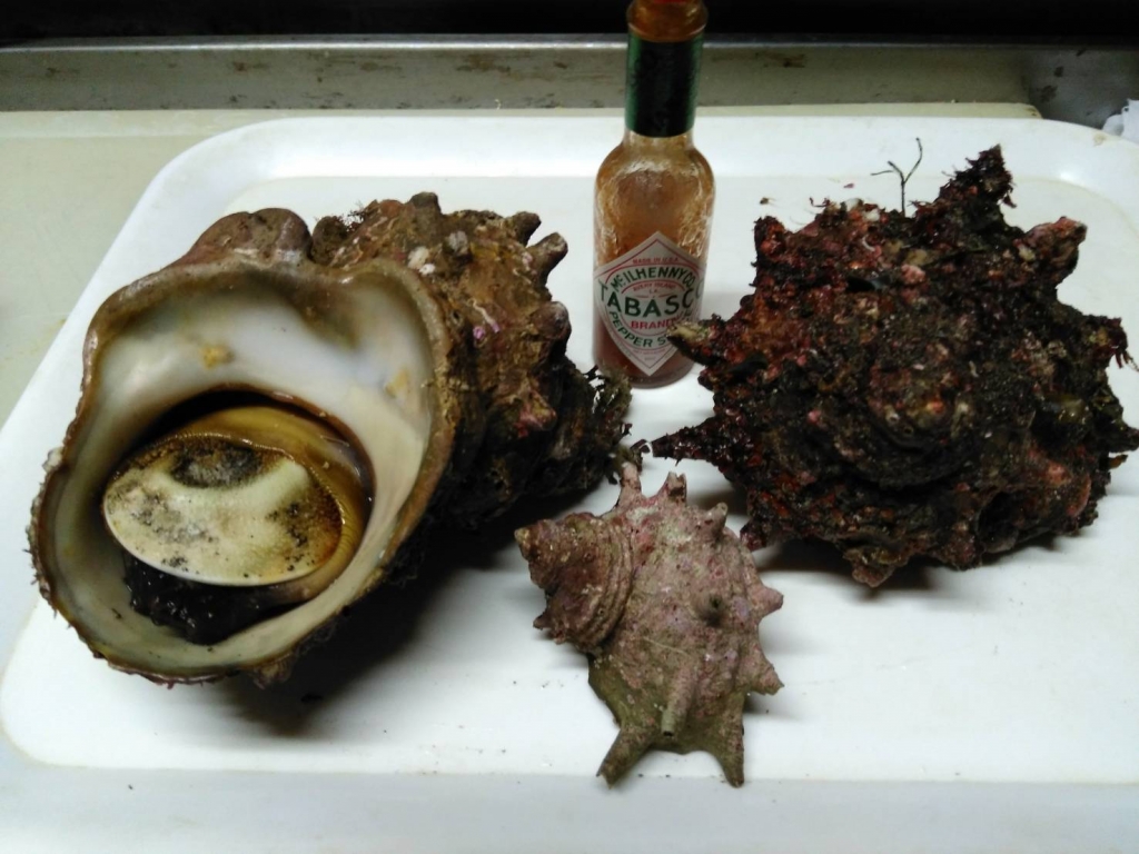 aiちゃんから頂いた180mmもの大きさ ”超巨大サザエ” こんな大きなサザエ見た事無い! 一体この大きさになるまでは 何年かかったのか? 推定10才オーバーか? 殻の蓋の渦巻きで年輪の如く年齢が分かればイイが… 普通サイズの渦巻きの柄と大差無い ただ厚みが全然違い 分厚い! 棘もあった様だが、 外房館山の荒波で(?)折れてしまっている JUGEMテーマ:磯釣り