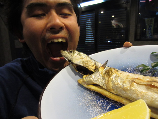 ご来店の裕也君にご注文の 〔 太刀魚塩焼き 〕を 召し上がる前に”チョット待ったぁ〜〜” ってお願いした1枚です! メータークラスの大型太刀魚 釣り上げた時の手ごたえがあり 食べごたえも有り有り!脂のりも有り有りです JUGEMテーマ:浦安 JUGEMテーマ:磯釣り