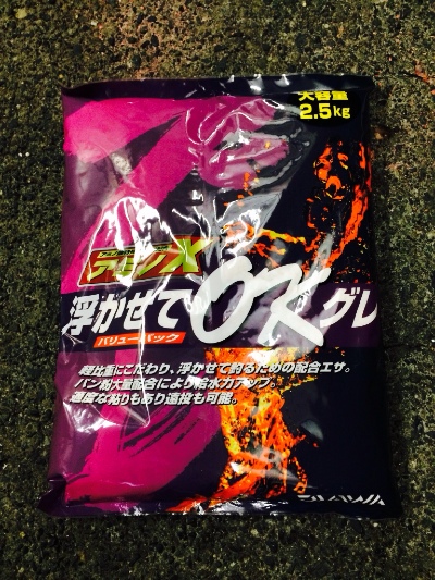 JUGEMテーマ:磯釣り 配合餌を比べてみようと思ったきっかけになった製品。独得な匂いがする。確かど遠投がこういう匂いだと記憶していたのだが、使ってみたらちょっと違っていた。 OKグレという名前ですが、新鮮パックの方とは、違う感じがします。Webを見ると、パン粉大量配合により給水力アップ、と書いてあります。実物もその通りで、パン粉が入っていて軽く、水も良く吸います。 色は白っぽくて、着水後よく見えます。 この日行った中木は、上がりが3時でしたが、普段のオキアミ3枚+配合2袋のう...