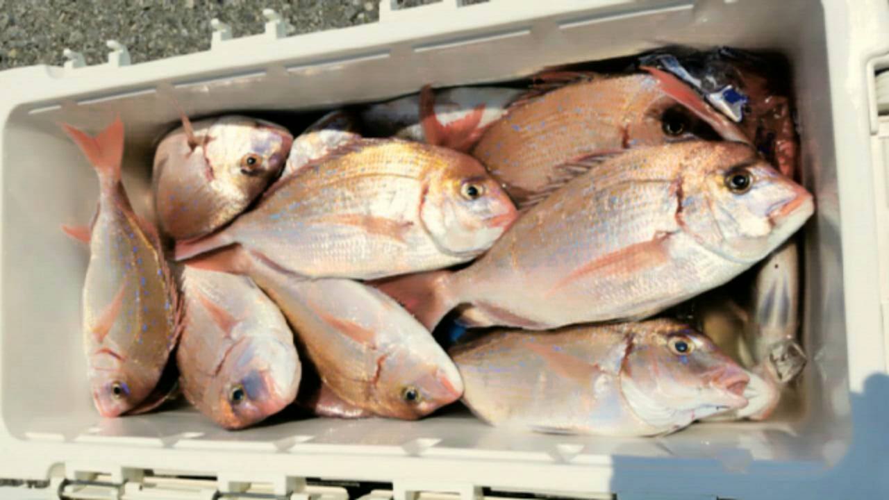 nobuちゃん・ kenちゃん・ 宮ちゃんお疲れ様でした 前日より気合い入れ千葉県飯岡”幸丸”ひとつてんや真鯛 快晴、お日様サンサン〜ベタ凪絶好の真鯛日和 結果=nobuちゃん大物賞 宮ちゃん〜竿折つつも、枚数頑張ったde賞 kenちゃん〜お気の毒。。。勝負の相手は船酔いだったよう 身のしまった美味しい真鯛〜ご馳走様です JUGEMテーマ:磯釣り