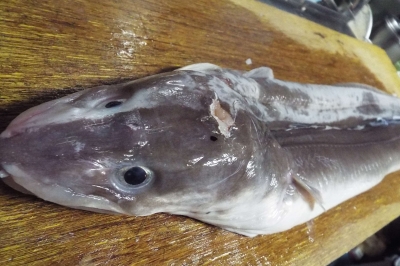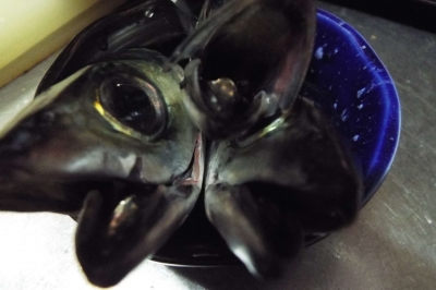【 黒ムツ 】 東京湾のとば口辺りで釣り上げた黒ムツ 成長するにつれ海の中深く 海底が生活圏 顔中”目”! 大きなギラギラ光る目玉が深海魚の証拠 色黒シャクレで鋭い歯が並び かなりの悪人顔。。。 しかし〜 外見からは想像できない美味さです うっすら桜色で 柔らかい身質 脂が多くのっている割には クドさがない 「ムツ」の「ムツ」とは 四国の方言で「むつっこい」「むつい」は 脂っぽいという意味で名前の由来だそぅ 皮つきのままバーナーで炙り 焼き霜したら 更に旨みが増し 後味のいい刺身になり...