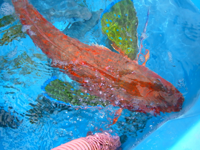 【ホウボウ(魴鮄)】 「鯛か平目かホウボウか」といわれるほど白身の美味しい高級魚 外道で釣れたらこれまた嬉しい魚です! 名前の由来は 釣り上げると浮き袋を使って 音を出すことができる事から「ホウボウ」説や 鳴き声が 方々に響き渡る説がある でも実際は「ホウボウ」ではなく 「ボーボー」や「グーグー」と聞こえる 大きな胸ひれが美しくゆるやかに舞い上がる 胸元には進化系の足があり 砂底を歩いて移動する これにはセンサーが完備で餌を探り出す ホウボウが泳ぐだけではなく 水中を舞い・歩く能力を身に...