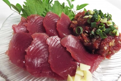 宮ちゃん〜お疲れ様&ご馳走さまです 立派なサイズの相模湾で釣り上げた ”カツオ” 頂いたカツオ〜新鮮な内に 刺身と薬味と味噌を加えナメロウに ただ〜宮ちゃんに曰く カツオとて〜 小魚!!! 本命は相模湾の憧れのヒーロー ”マグロ” カツオとて ”外道”こんな外道なら大歓迎です シーズン短し〜頑張れ宮ちゃん JUGEMテーマ:磯釣り